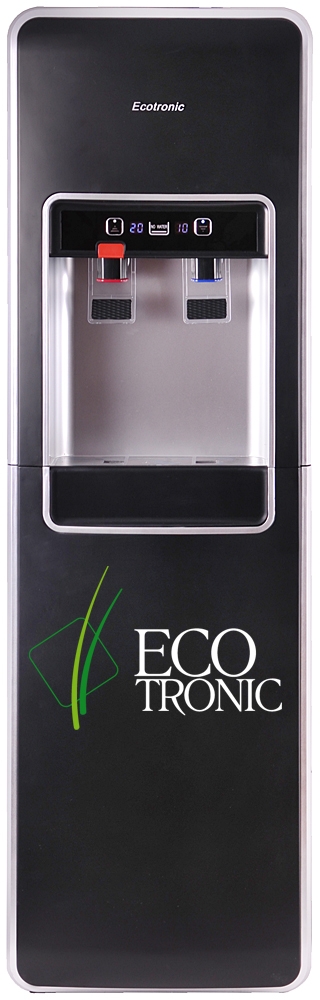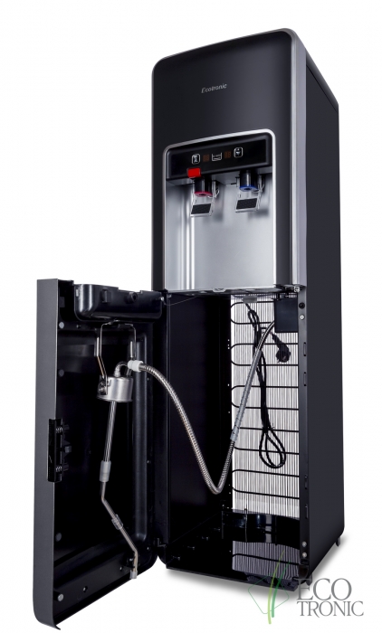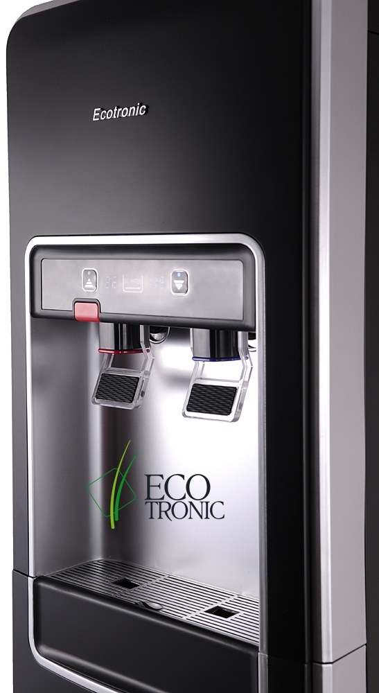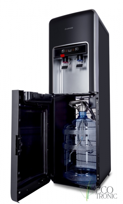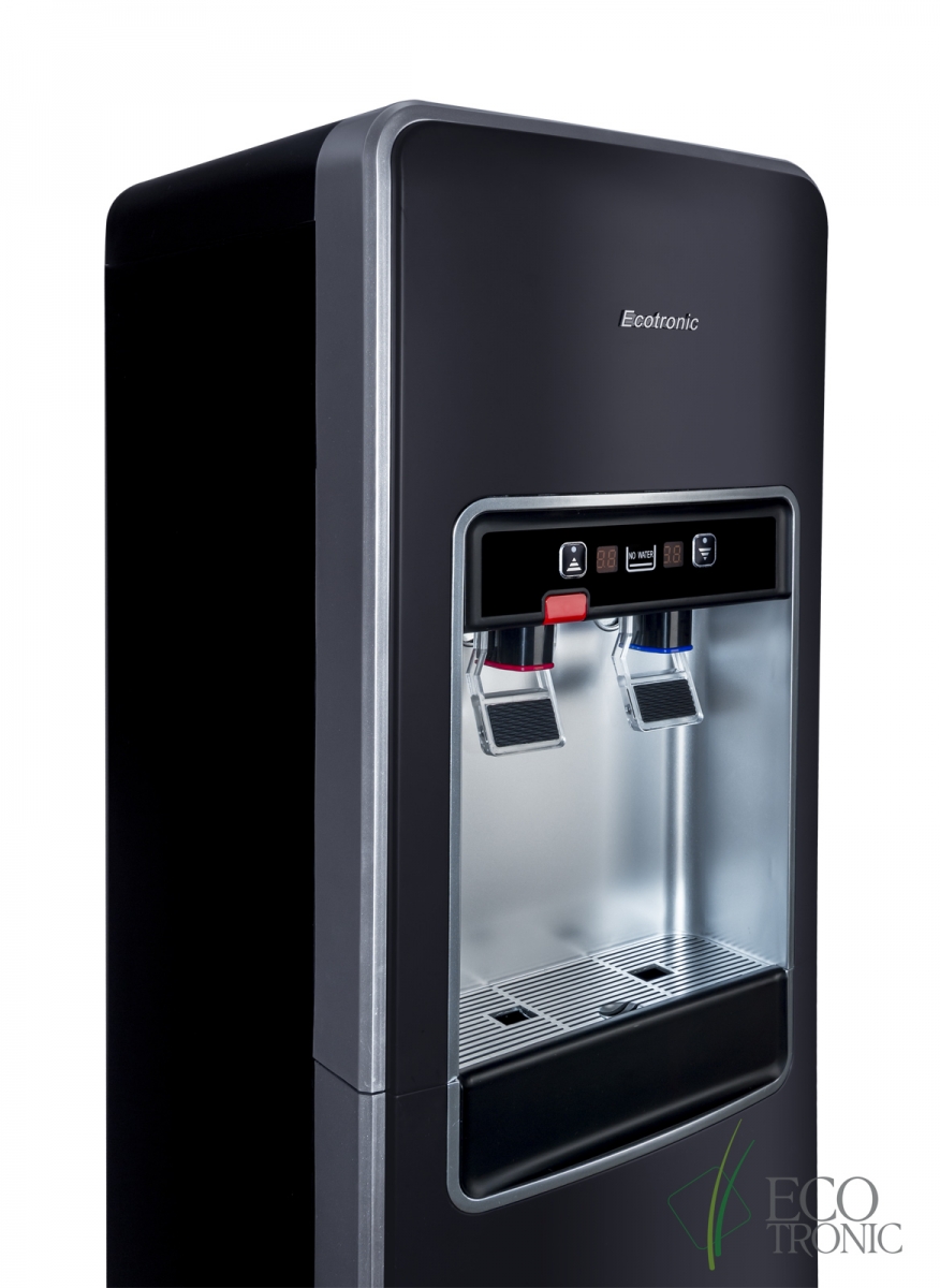 Ecotronic P5-LXPM black - кулер с нижней загрузкой бутыли. Температурный монитор с управлением. Краны нажим кружкой. Горячий кран с защитой от случайного нажатия (защита от детей).