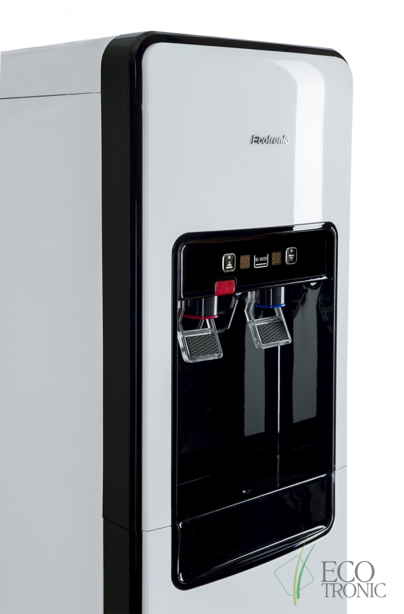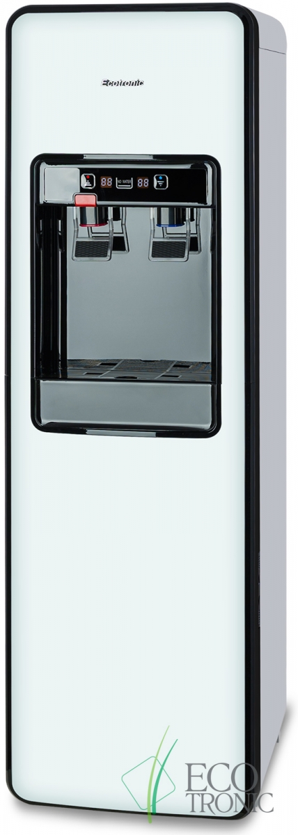 Ecotronic P5-LXPM white - кулер с нижней загрузкой бутыли. Температурный монитор с управлением. Краны нажим кружкой. Горячий кран с защитой от случайного нажатия (защита от детей).