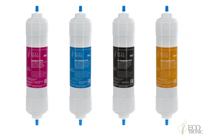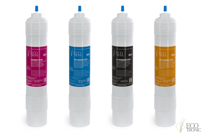Комплект сменных фильтров (картриджей) с повышенным ресурсом для пурифайеров с ультра-фильтрационной мембраной (UF). Подобные пурифайеры маркируются после дефиса xx-U4L, где xx - серия и номер модели, U - ультрафильтрация, 4-ре ступени очистки, L - напольный.
