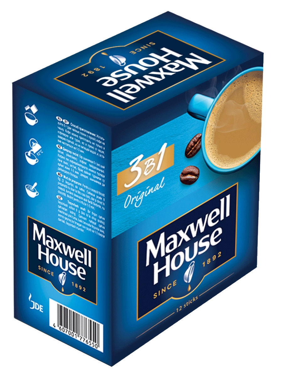 Maxwell House 3 в 1 – это сочетание высококачественного растворимого кофе Maxwell House, сливок и сахара. Вкусный кофе с нежным сливочным вкусом в удобном формате упаковки.