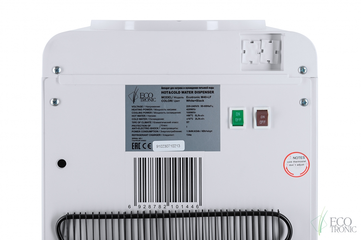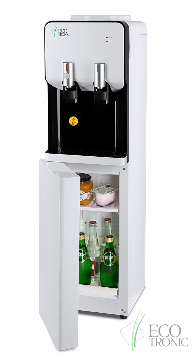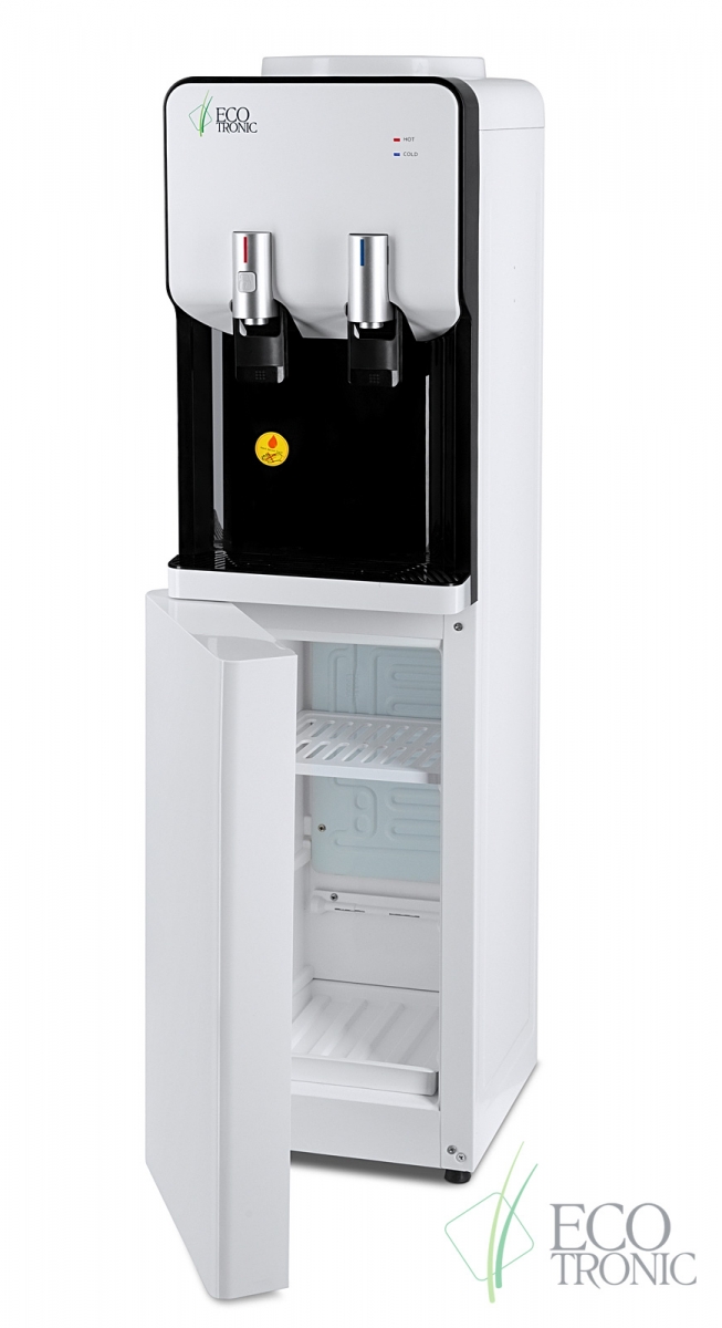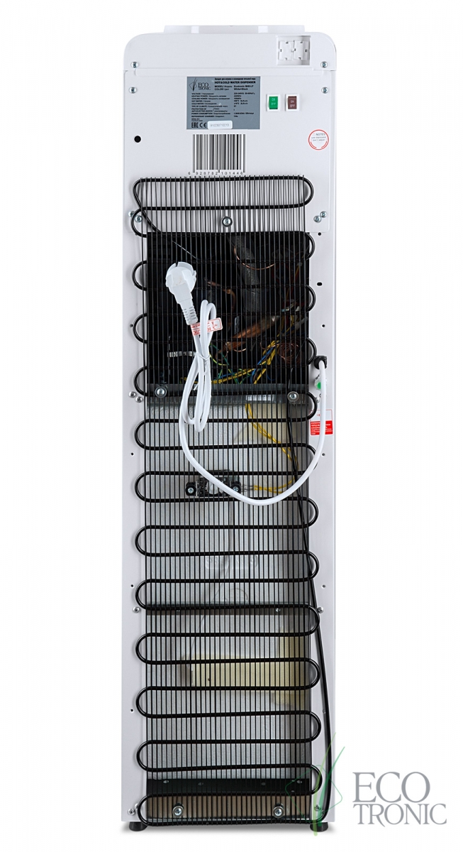 Кулер Ecotronic M40-LF с холодильником. Компрессорное охлаждение. Долговечный и практичный цельнотянутый бак холодной воды: поскольку нет сварных швов, меньше вероятность появления ржавчины со временем. Стабильную работу системы охлаждения воды и холодильника обеспечивает наличие второго термостата для холодильника.