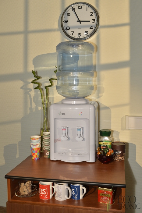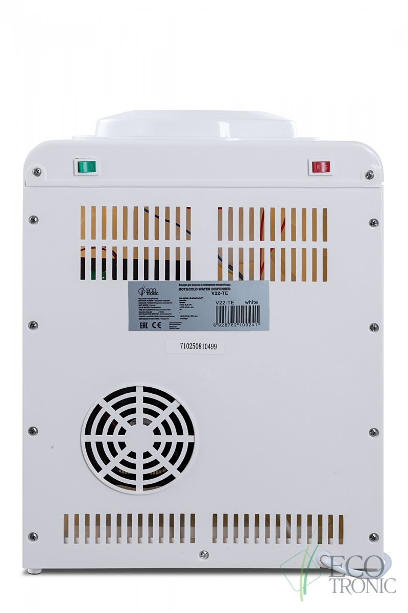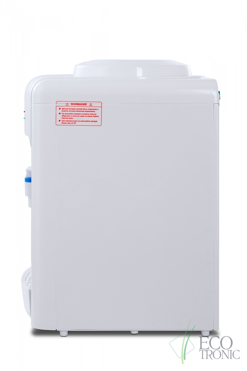 Настольный кулер с электронным охлаждением. Большая производительность бака горячей воды: 5,5 лч, до температуры 90-92 С. Цвет корпуса – белый. Краны "нажим кружкой".