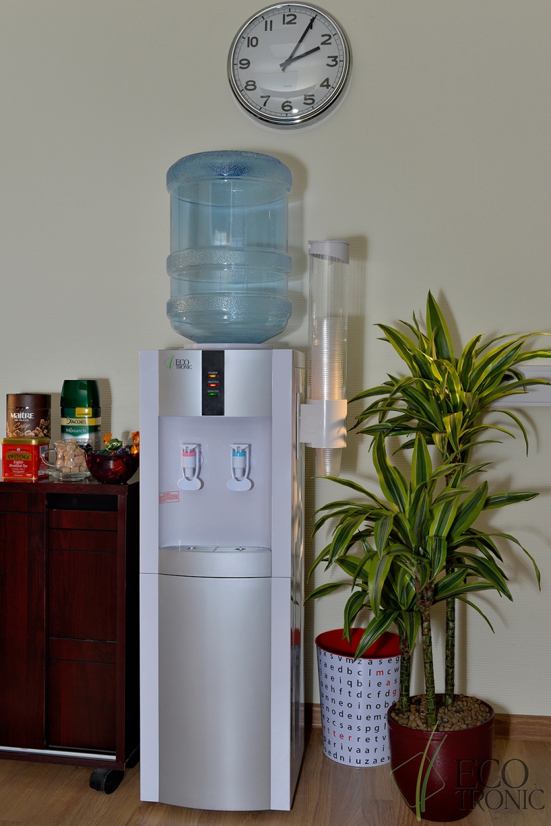 Кулер Ecotronic V21-LF White с холодильником . Напольный кулер с компрессорным охлаждением. Тип кранов подачи воды - "Нажим кружкой".