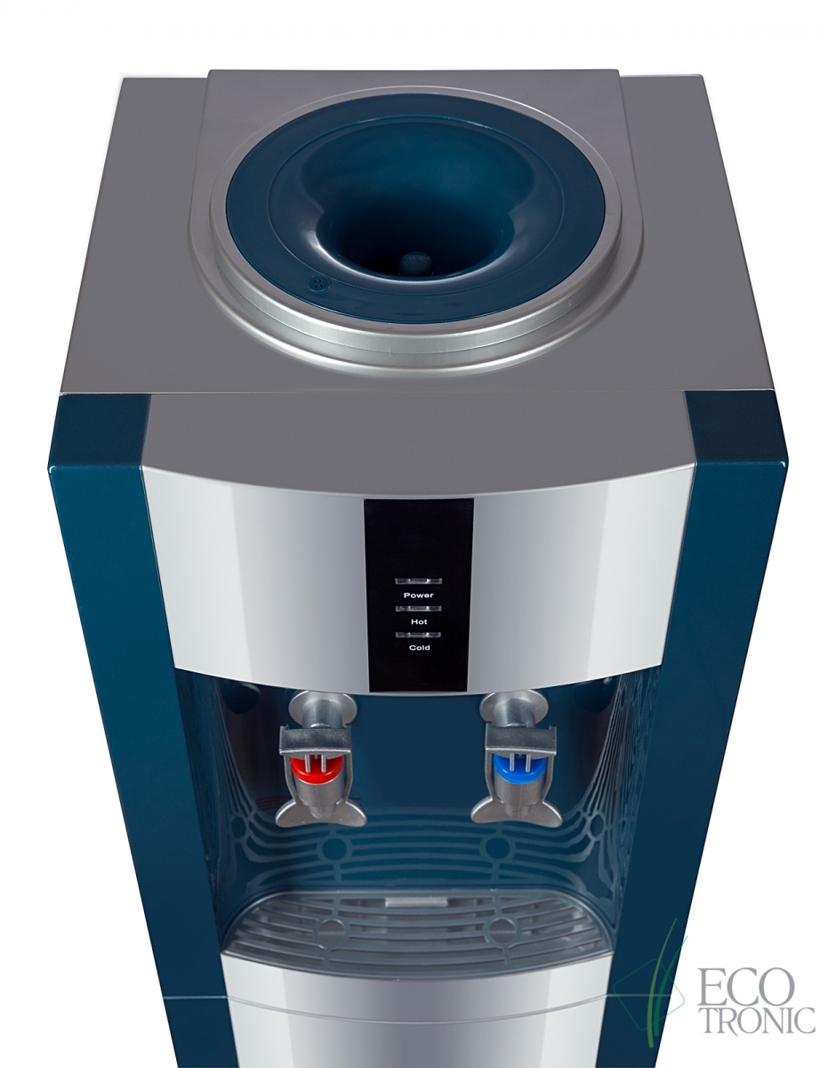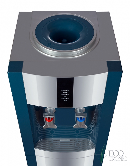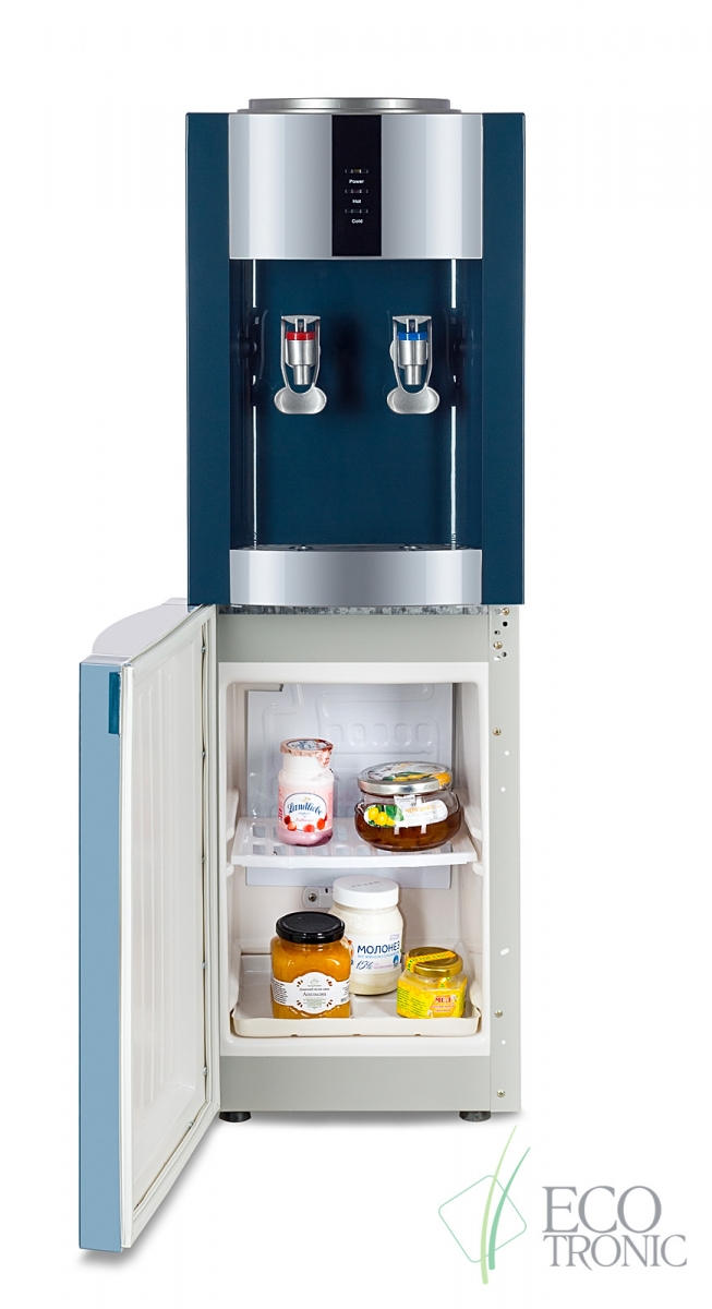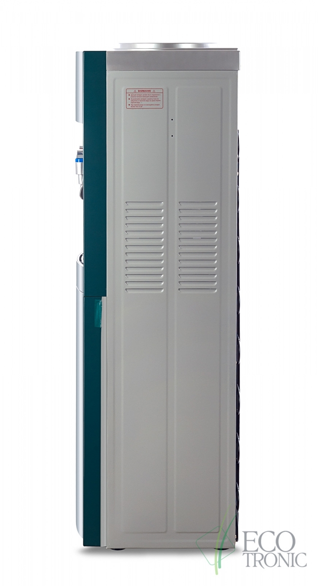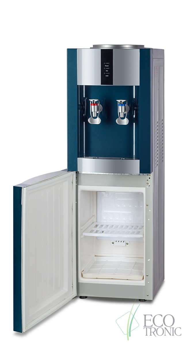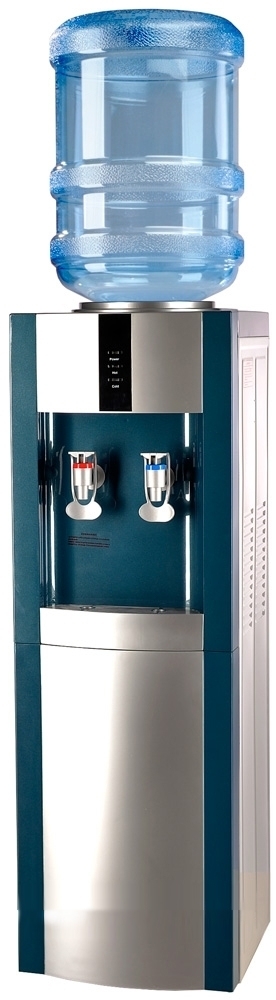 Напольный кулер с компрессорным охлаждением. С холодильником. Цвет морской волны с серебристой вставкой.