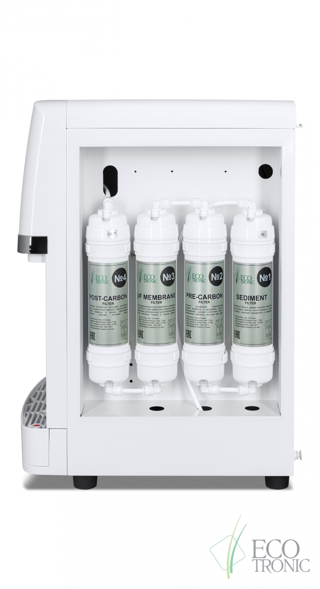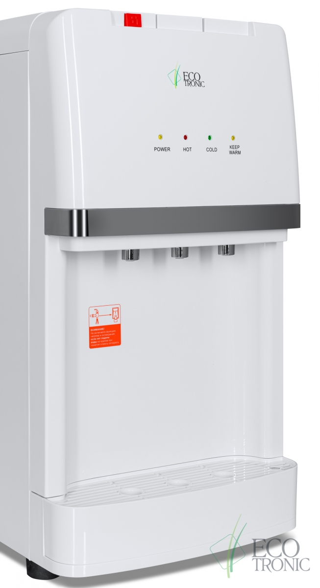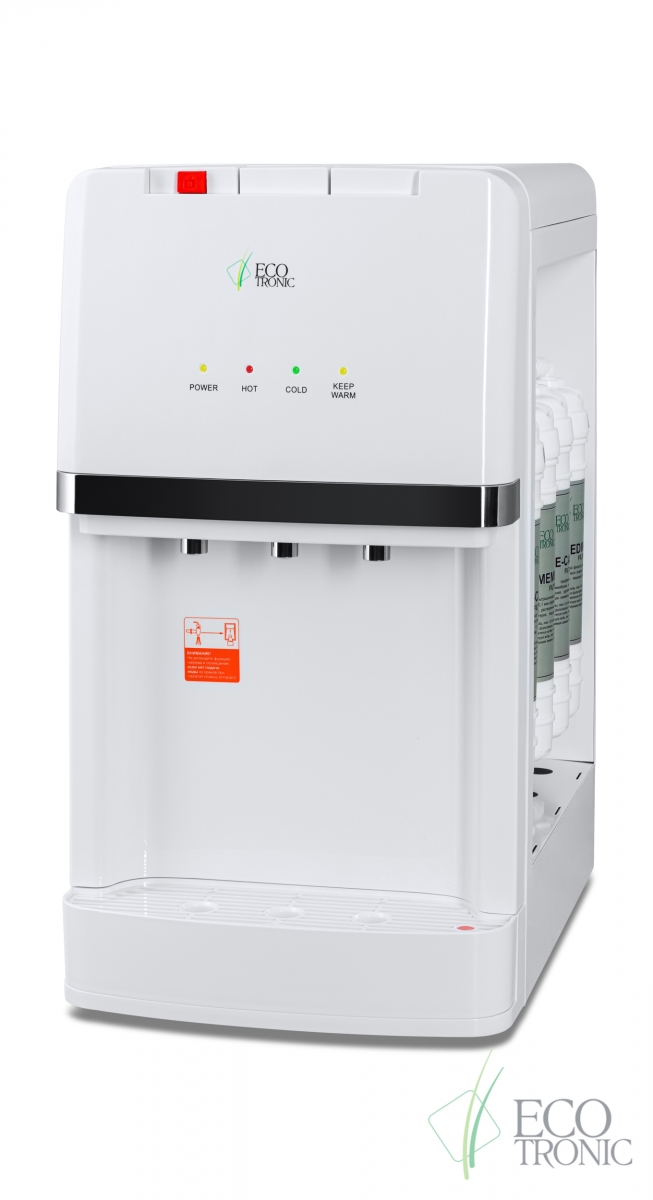 Пурифайер настольного типа с ультрафильтрационной системой очистки воды. Электронное охлаждение. Стильный дизайн. Три крана типа "клавиши": подачи горячей воды с защитой от детей, холодной воды и подачи воды комнатной температуры из бутыли. Индикация работы пурифайера, нагрева и охлаждения воды.
