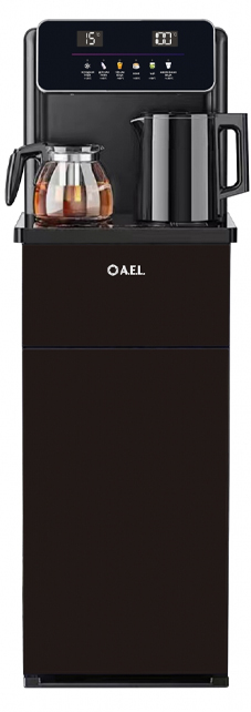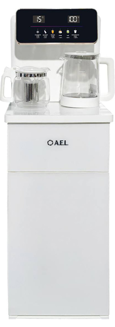 Напольный кулер с нижней загрузкой бутыли и электронным охлаждением. Корпус белого цвета с серебристым декором. Лоток водоприема с поплавком перели...